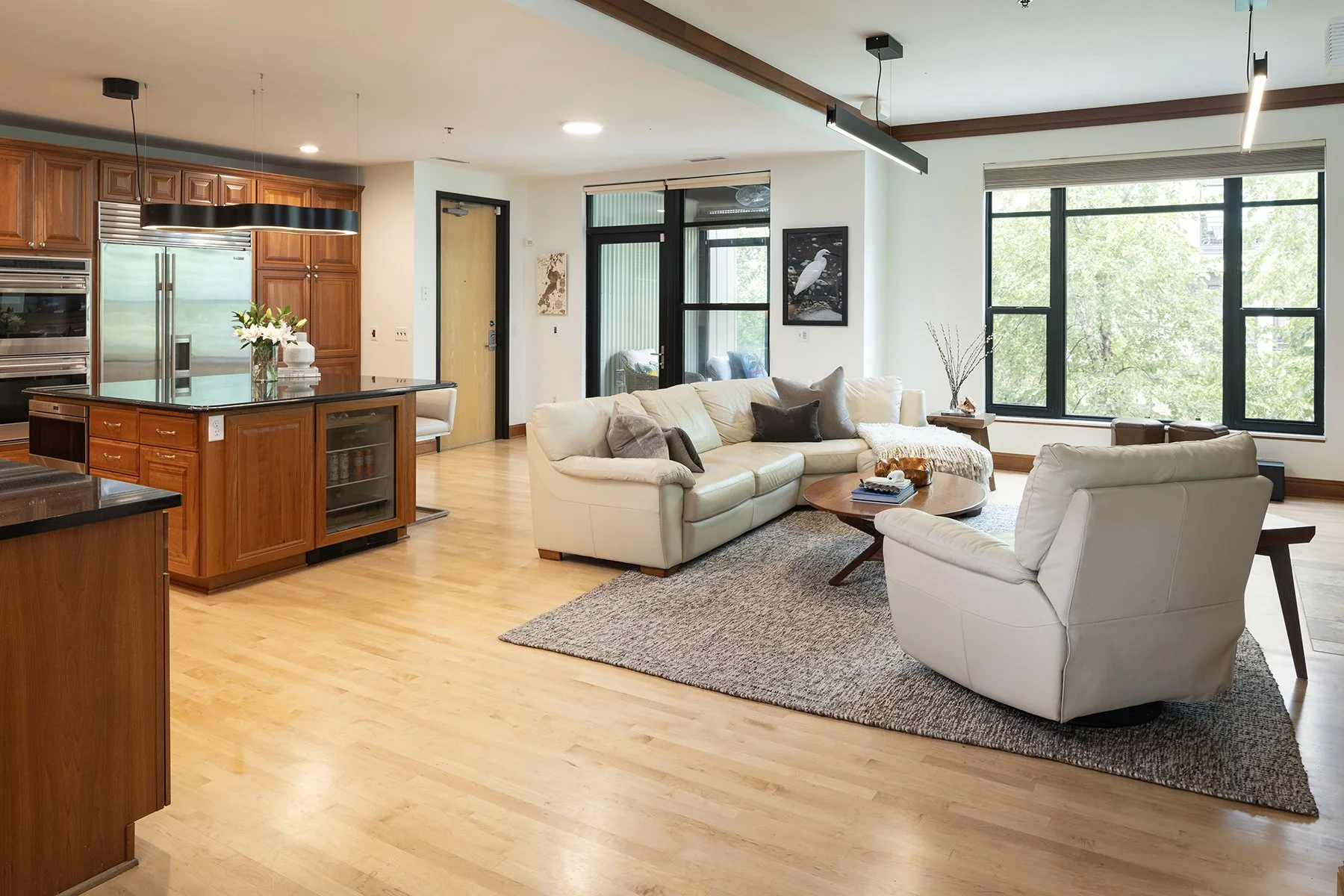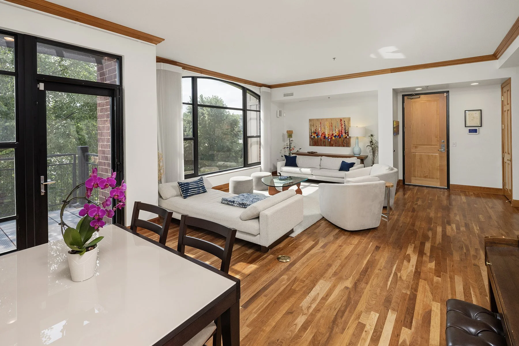 One of the most graciously spectacular residences in Saint Paul, with walls of windows overlooking the tranquil Mississippi River, delightful gardens and verdant woodlands - captivatingly paired with the dynamic skyline as the backdrop. This exceptional condo beautifully blends: light-infused inviting interiors, harmonious scale, enduring design, custom finishes and picturesque vistas. Perfectly proportioned living spaces, warm wood tones with bespoke detailing, extensive built-ins, well-appointed open-concept kitchen and informal dining adjacent to welcoming family room with fireplace, ethereal primary retreat with spa-inspired bathroom and customized walk-in closet, expansive art walls, spacious secondary bedrooms (one currently used as office with streamlined built-ins), unique hand-painted bathroom mural, laundry room with work area, abundant storage, private two-car doored garage within the building, and two magnificent outdoor living areas - a breathtaking river facing balcony and calming three-season sunroom off kitchen. A one-of-kind home with matching location, unforgettable views, memorable experiences and unrivaled walkability - the ultimate Zen-like urban sanctuary. Enjoy all things Saint Paul - lovely walking/biking trails, lush parks, restaurants, shopping, artist studios, farmers market, sporting events, theatre and much more. FSF and dimensions provided by third party and FSF includes utility room. Fireplace flames in property photos have been digitally added. 2638 FSF, 3/2/2, built 2004.